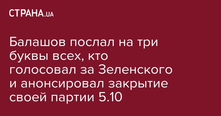 Балашов послал на три буквы всех, кто голосовал за Зеленского и анонсировал закрытие своей партии 5.10