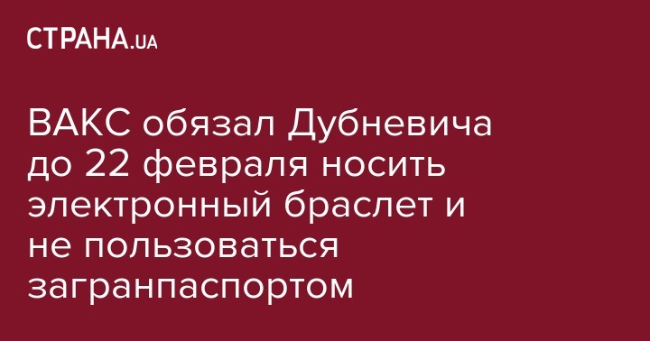 Дубневича, подозреваемого в совершении преступления, предусмотренного ч.5 ст.191 УК Украины (присвоение, растрата имущества или завладение им путем злоупотребления служебным положением), обязали являться по требованию детектива, прокурора и суда. Также он должен сообщать об изменении места жительства или места работы, воздерживаться от общения со свидетелями, сдать на хранение паспорт для выезда за границу и носить электронное средство контроля.