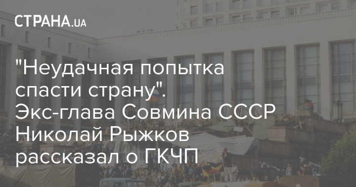 "Неудачная попытка спасти страну". Экс-глава Совмина СССР Николай Рыжков рассказал о ГКЧП