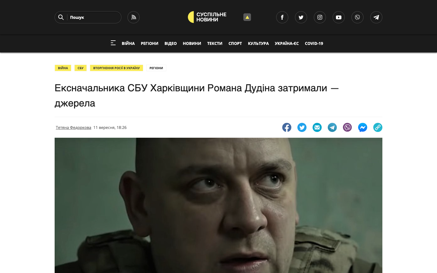 Государственное "Суспильне" со ссылкой на источники сообщает о задержании экс-начальника СБУ в Харьковской области Романа Дудина.