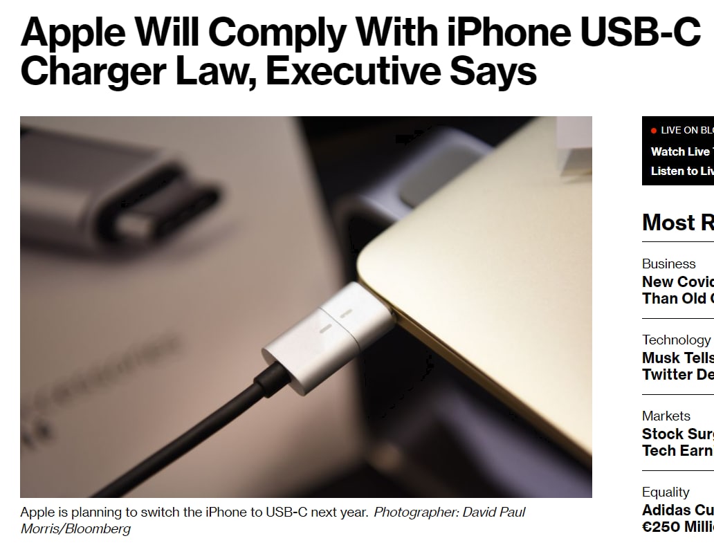 С 2024 года в Евросоюзе вступает в силу требование об унификации зарядных устройств, и американской компании необходимо будет соблюдать этот закон.