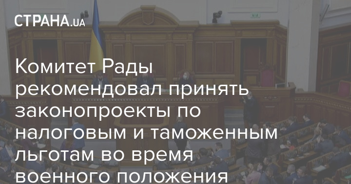 Комитет Рады по финансам, налоговой и таможенной политике рекомендовал принять за основу два законопроекта - №8298 и 8299, по налоговым и таможенным льготам во время военного положения.