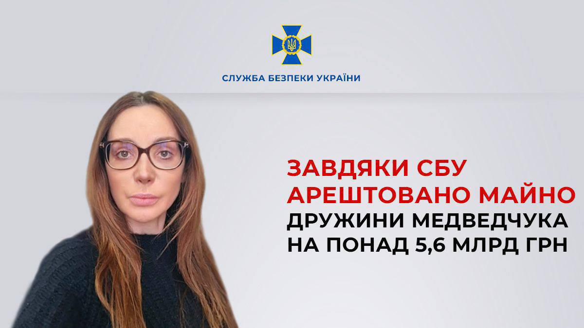 В Украине арестовано имущество супруги Виктора Медведчука Оксаны Марченко на 5,6 млрд грн. В частности, наложен арест на два земельных участка, четыре жилых дома в Киеве и Крыму и десять автомобилей.