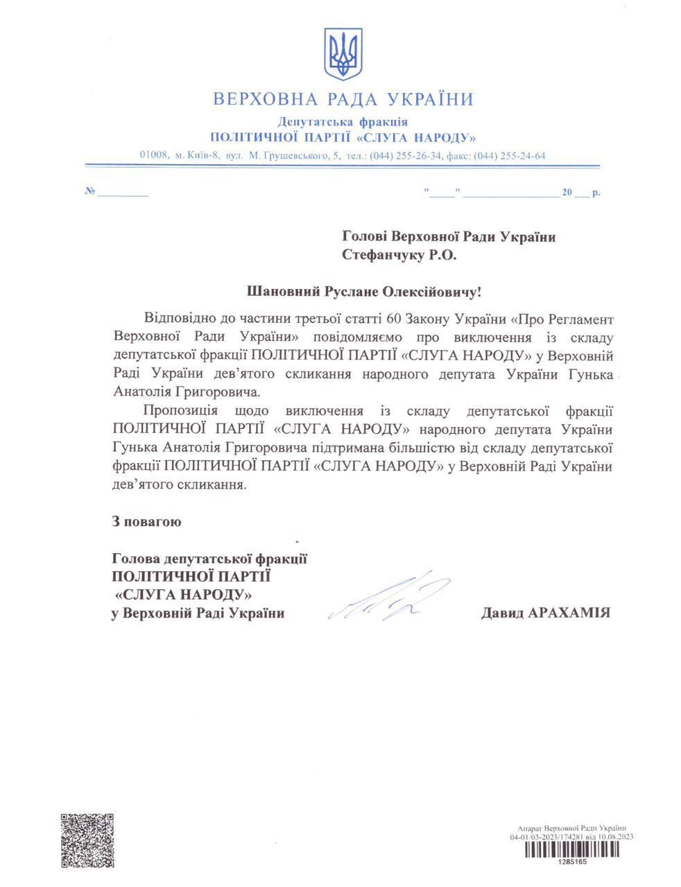 "Слуги народа" исключили из своей парламентской фракции народных депутатов Анатолия Гунько и Богдана Торохтия.