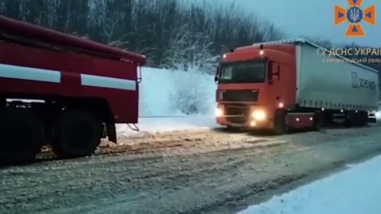 • Кировоградская область - вблизи села Большая Виска ликвидирована пробка, 30 грузовых автомобилей стоят на обочине. Отбуксировано 164 транспортных средства, 293 людям оказана помощь.