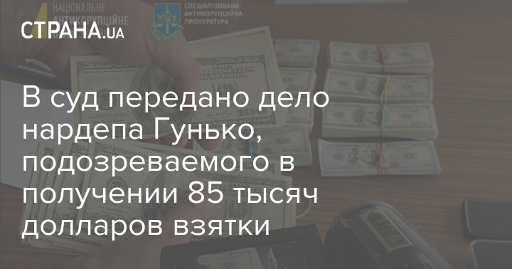 В суд передано дело народного депутата от "Слуги народа" Анатолия Гунько, подозреваемого в получении взятки в размере 85 тысяч долларов.