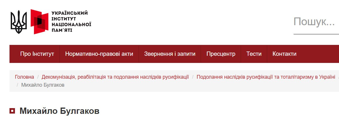 Институт национальной памяти признал "украинофобом" уроженца Киева Михаила Булгакова и объявил использование имени писателя "пропагандой российской имперской политики".