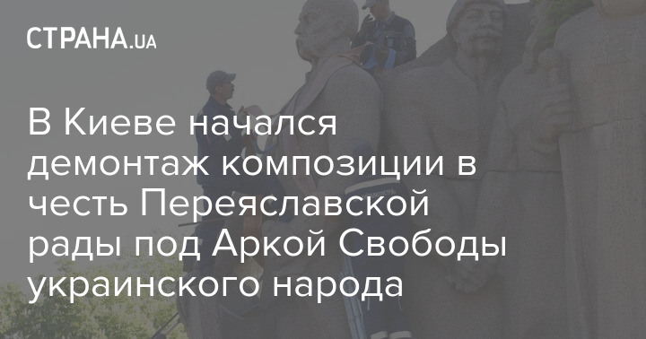 В Киеве начался демонтаж композиции в честь Переяславской рады под Аркой Свободы украинского народа