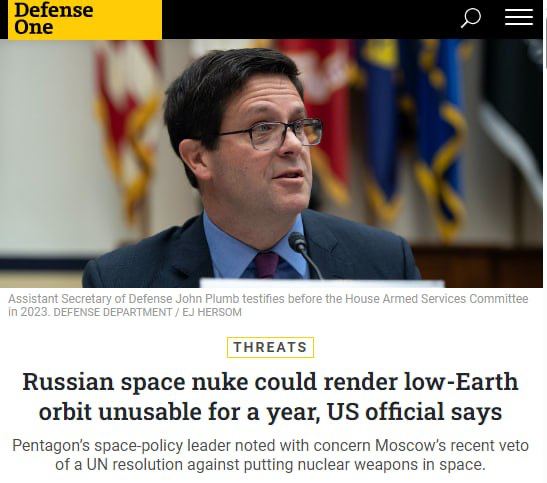 Руководитель космической политики Пентагона Джон Пламб заявил, что космическое ядерное оружие РФ может сделать низкую околоземную орбиту непригодной для использования на год.
