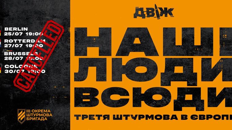 Третья штурмовая бригада отменила поездки своих ветеранов по ФРГ и Нидерландам. Они собирались провести встречи с украинцами - в Берлине, Роттердаме, Брюсселе и Кельне. Поездка отменена из соображений безопасности.