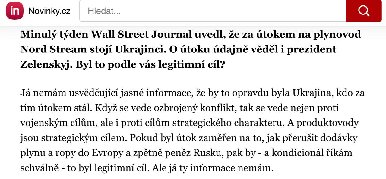 "У меня нет четкой информации о том, что за атакой действительно стояла Украина. Когда ведется вооруженный конфликт, он ведется не только против военных целей, но и против целей стратегического характера. А трубопроводы являются стратегической целью. Если бы атака была направлена на прекращение поставок газа и нефти в Европу и возвращение денег в Россию, то – и я специально говорю "условно" – это была бы законная цель. Но у меня нет такой информации", - сказал Павел.