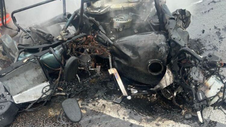 В результате столкновения мотоцикл загорелся. Фото: Нацполиция