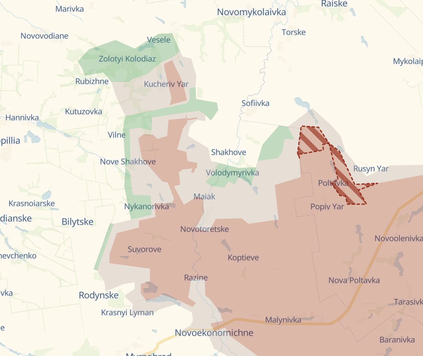 Армия РФ захватила Полтавку на Константиновском направлении, сообщил военный паблик Deep State.