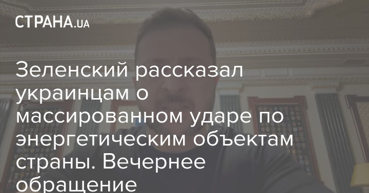 Зеленский рассказал украинцам о массированном ударе по энергетическим объектам страны. Вечернее обращение