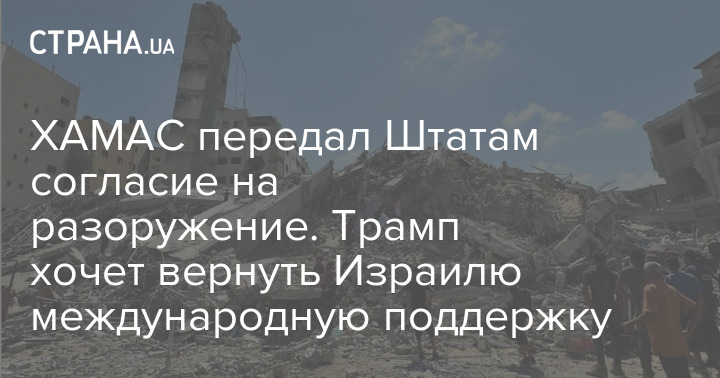 ХАМАС передал Штатам согласие на разоружение. Трамп хочет вернуть Израилю международную поддержку