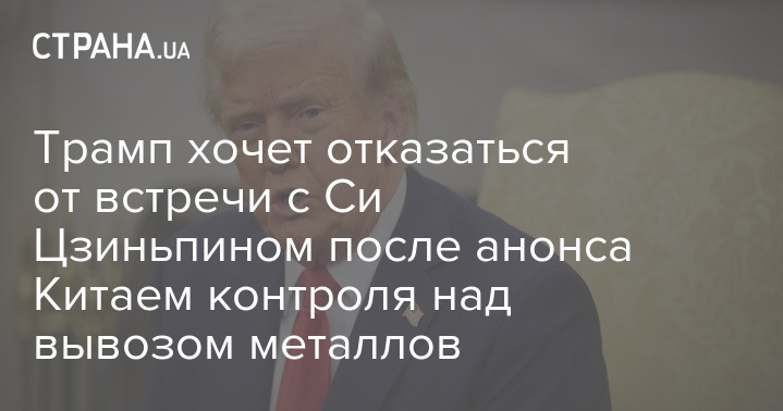 Президент США Дональд Трамп хочет отказаться от встречи с лидером КНР Си Цзиньпином после того, как Китай анонсировал введение экспортного контроля над вывозом редкоземельных металлов. При этом он выступил с угрозами Китаю масштабным повышением пошлин.