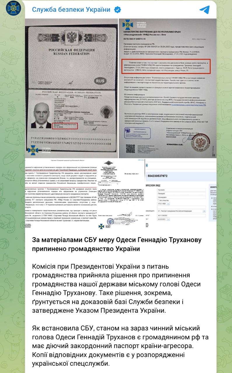 В свою очередь СБУ официально сообщила, что Труханова лишили гражданства на основании ее материалов.