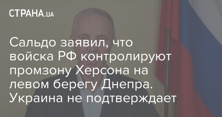 Сальдо заявил, что войска РФ контролируют промзону Херсона на левом берегу Днепра. Украина не подтверждает