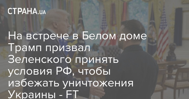 На встрече в Белом доме Трамп призвал Зеленского принять условия РФ, чтобы избежать уничтожения Украины - FT