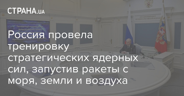Под руководством президента РФ Владимира Путина российские войска провели тренировку стратегических ядерных сил с привлечением наземной, морской и авиационной составляющих. Во время тренировки были выполнены практические пуски межконтинентальных баллистических ракет и крылатых ракет воздушного базирования.