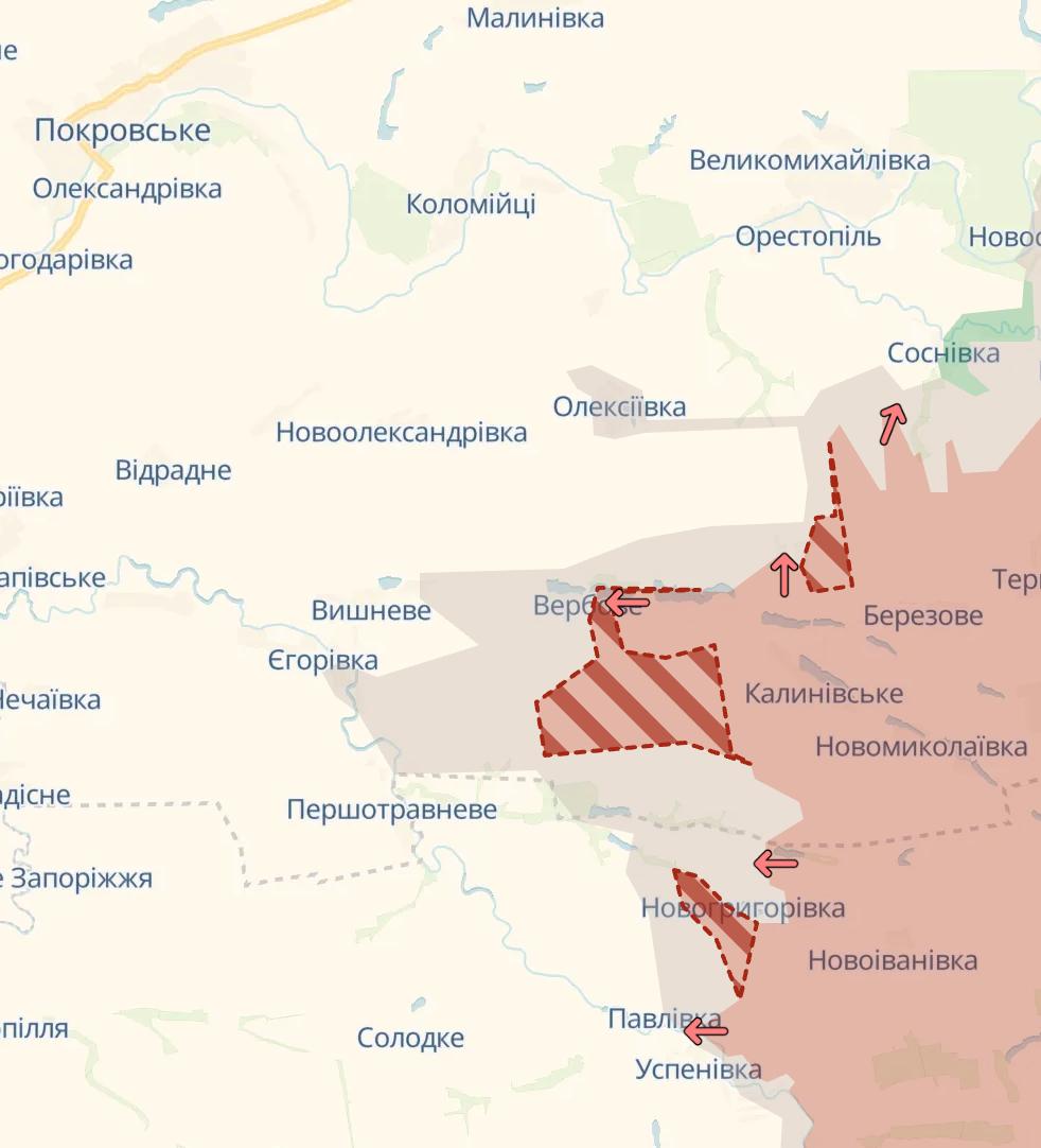 Южнее российские войска продвинулись около Новогригоровки Запорожской области, сообщает Deep State.
