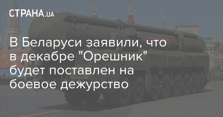 В Беларуси заявили, что в декабре "Орешник" будет поставлен на боевое дежурство