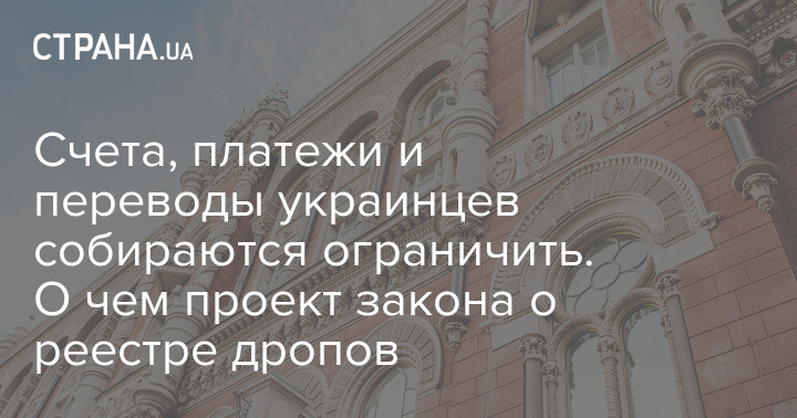 В Верховной Раде зарегистрирован законопроект №14161 о создании реестра дропов (передающих счета посторонним за вознаграждение), который давно продвигал Нацбанк.