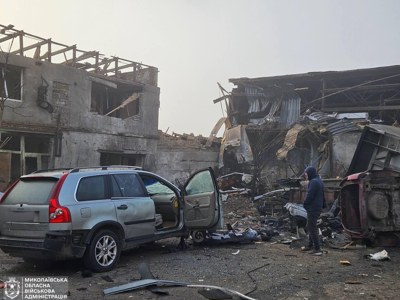 В Николаеве беспилотники попали в район супермаркета, который загорелся. Повреждены здания на территории СТО и два автомобиля.