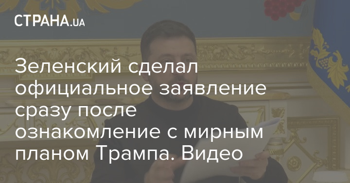 Зеленский сделал официальное заявление сразу после ознакомление с мирным планом Трампа. Видео