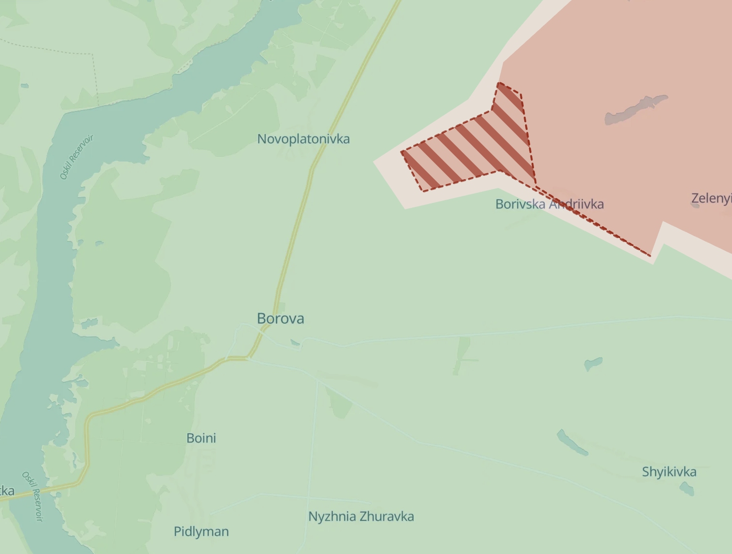 Еще одно продвижение РФ, зафиксированное украинскими мониторинговыми пабликами - под Боровой в Харьковской области.