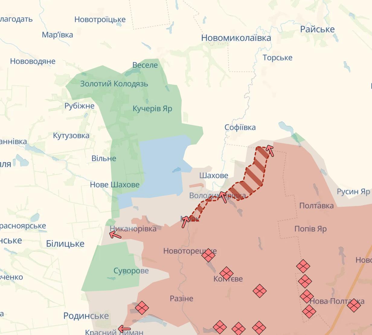 Также у РФ продвижение в районе Владимировки, что севернее Мирнограда, и в Степногорске, что на запорожском направлении.
