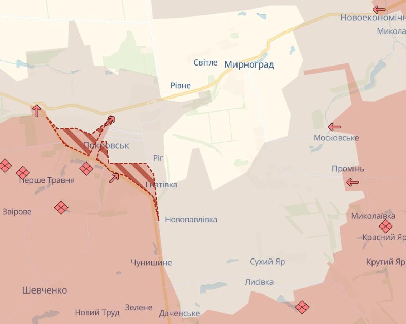 На карте Deep State отображено существенное продвижение РФ в Покровске, но пока не полная его потеря.