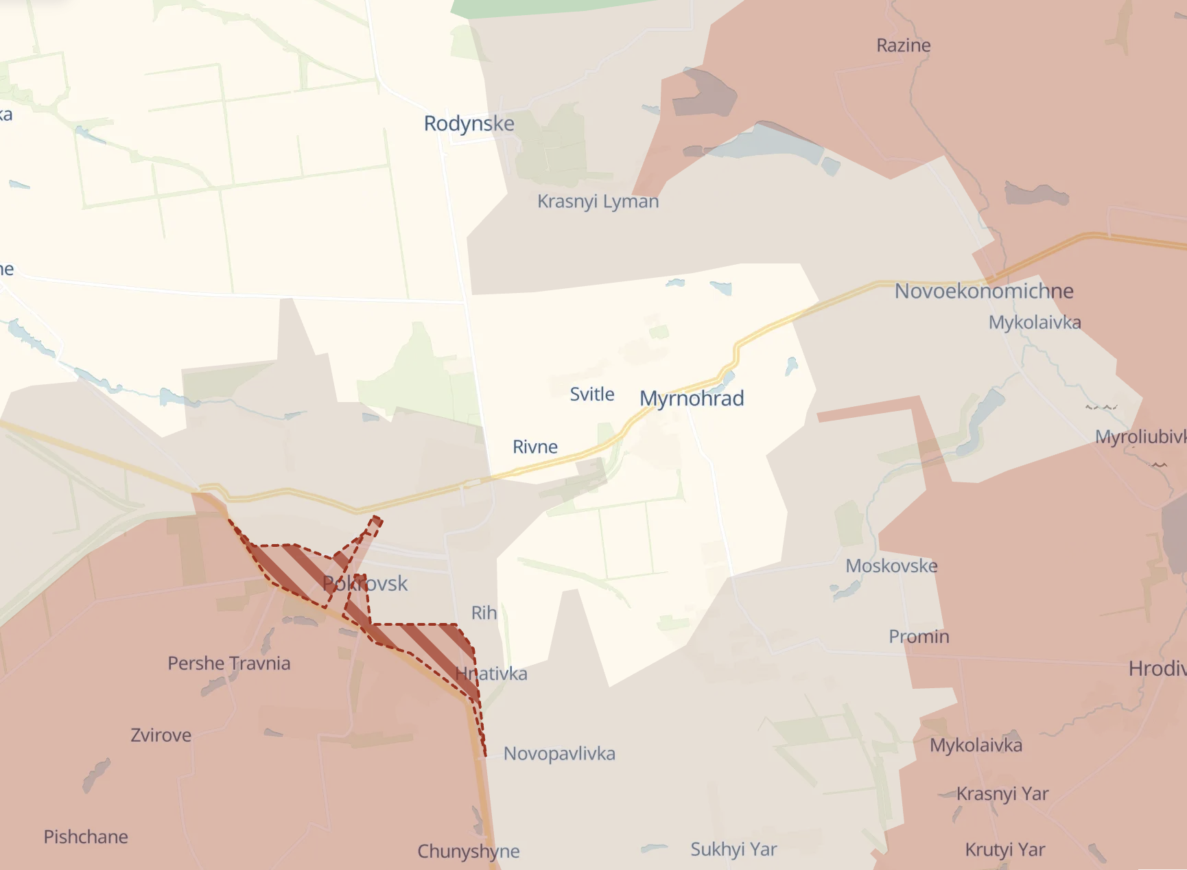 Хотя карта этого не отображает, но Покровск полностью потерян, заявил украинский военный Владислав Потоцкий после выхода из города. Коридор для выхода из этого участка уже меньше двух километров.