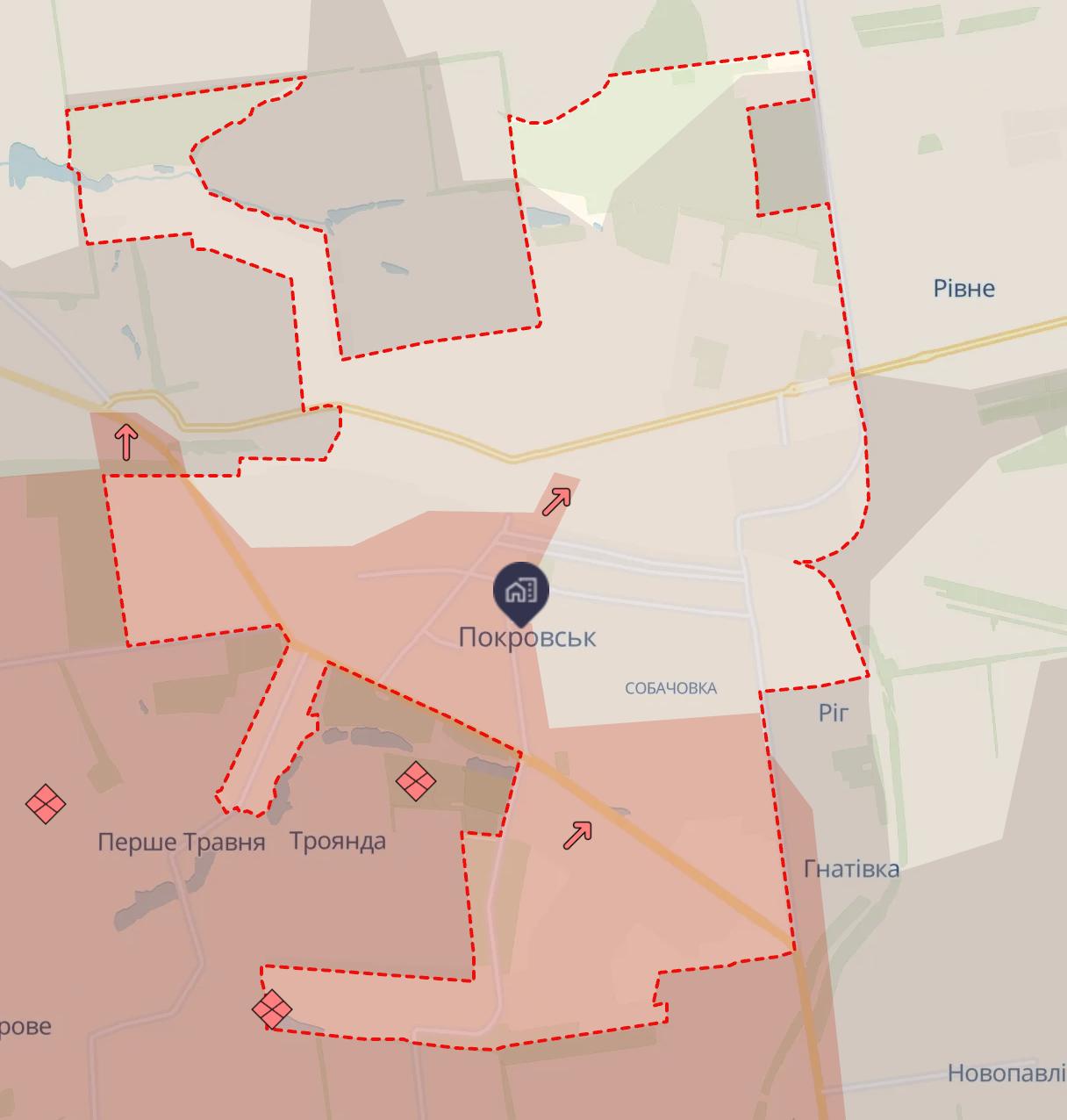 Напомним, накануне ресурс Deep State зафиксировал продвижение российской армии в Покровске и в его окрестностях.