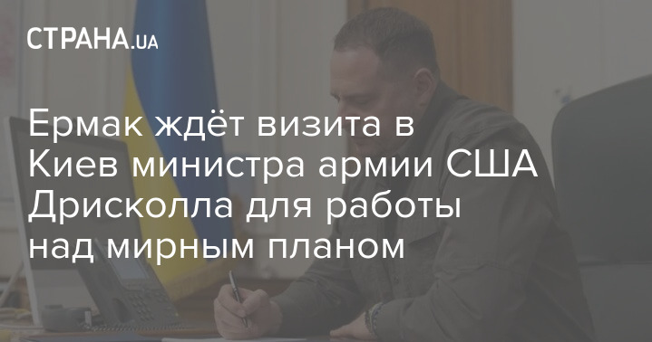 Ермак ждёт визита в Киев министра армии США Дрисколла для работы над мирным планом