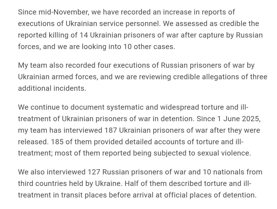 В докладе Верховного комиссара ООН по правам человека Фолькера Тюрка говорится, что с середины ноября зафиксирован рост сообщений о казнях украинских военнослужащих.