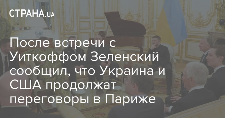 После встречи с Уиткоффом Зеленский сообщил, что Украина и США продолжат переговоры в Париже