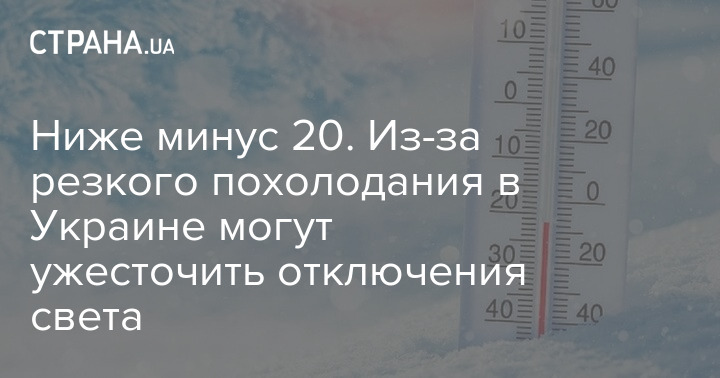 Синоптики спрогнозировали резкое похолодание в Украине с 10–11 января, когда температура может опуститься ниже -20 градусов. В связи с этим энергетики предупреждают об ужесточении графиков отключений света.