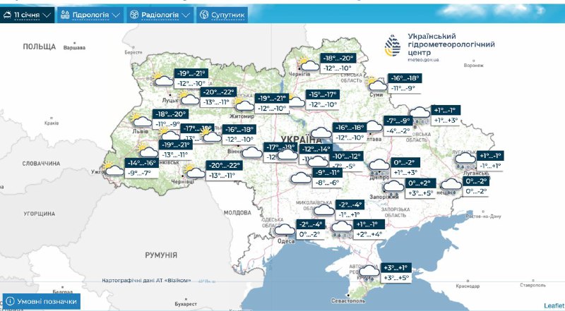 В западных и северных областях, а также в Винницкой и Черкасской температура ночью может снизиться до -14...-20 градусов, местами до -23. Днем ожидается от -9 до -15 градусов.