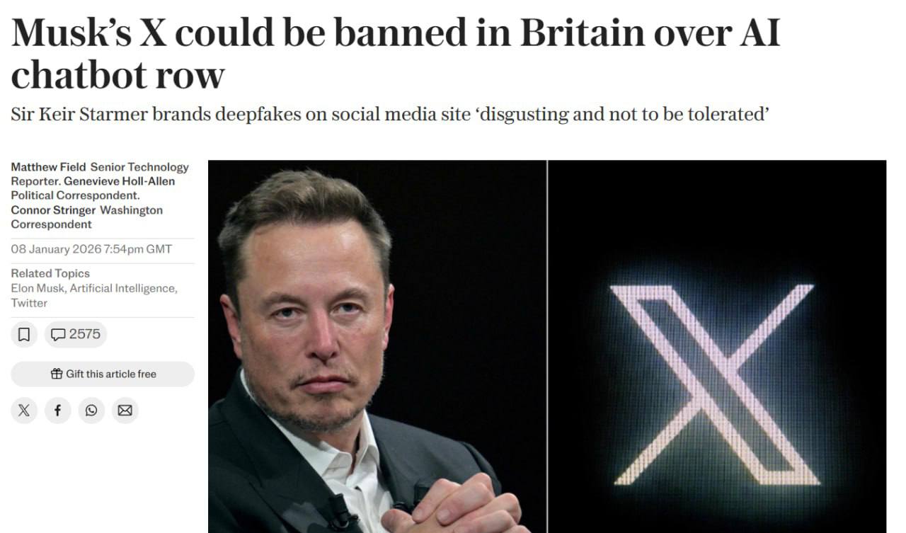 В Британии могут запретить социальную сеть Х (в прошлом Twitter) американского миллиардера Илона Маска из-за скандала с чат-ботом Grok.