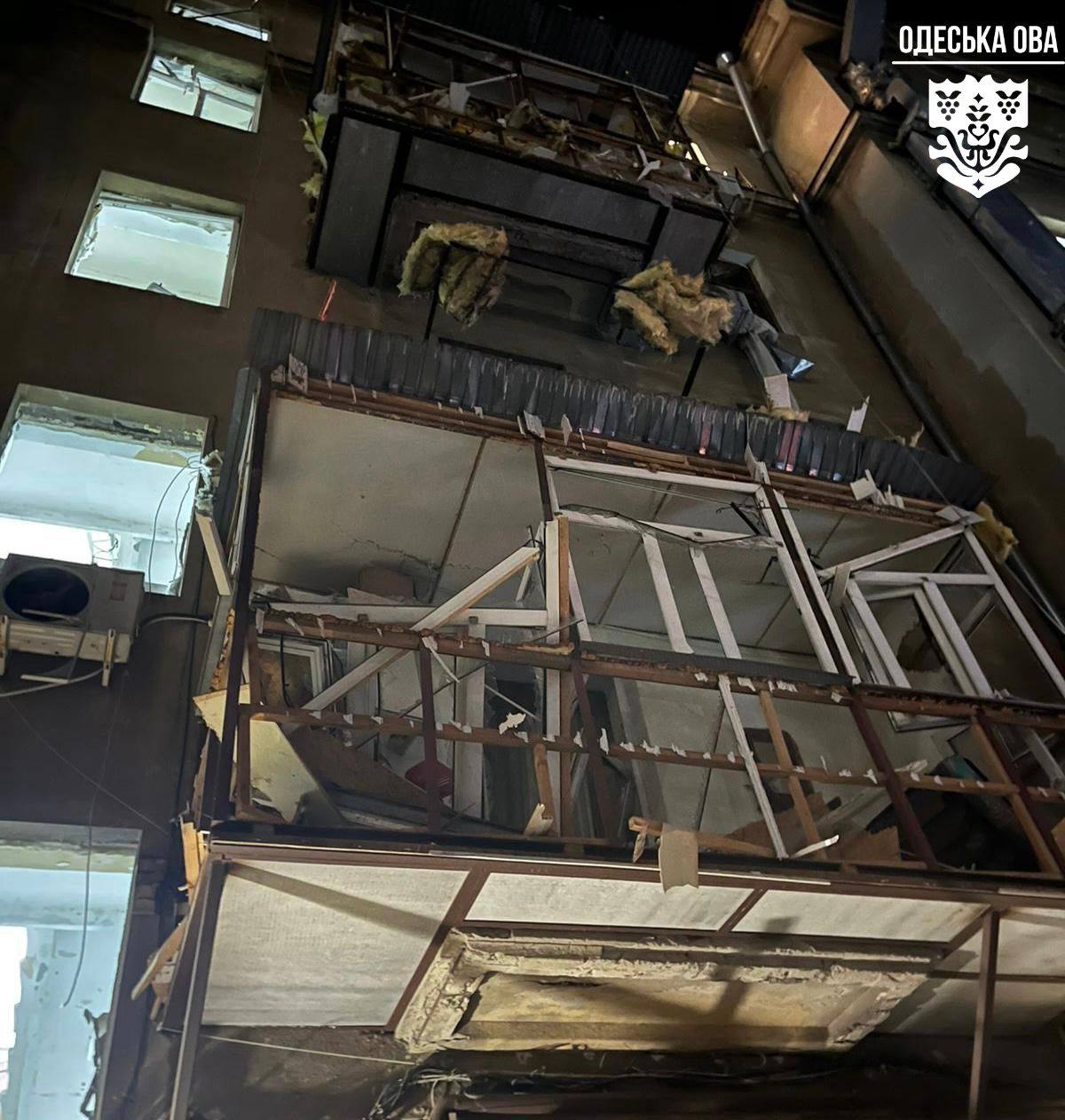 Глава Одесской ОВА Олег Кипер сообщил, что в результате ночной атаки дронов по Одессе были повреждены энергетические объекты, многоквартирные дома и социальная инфраструктура, в том числе больница, детский сад, луна-парк, фитнес-центр и частный транспорт.