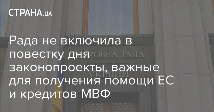 Рада не включила в повестку дня законопроекты, важные для получения помощи ЕС и кредитов МВФ