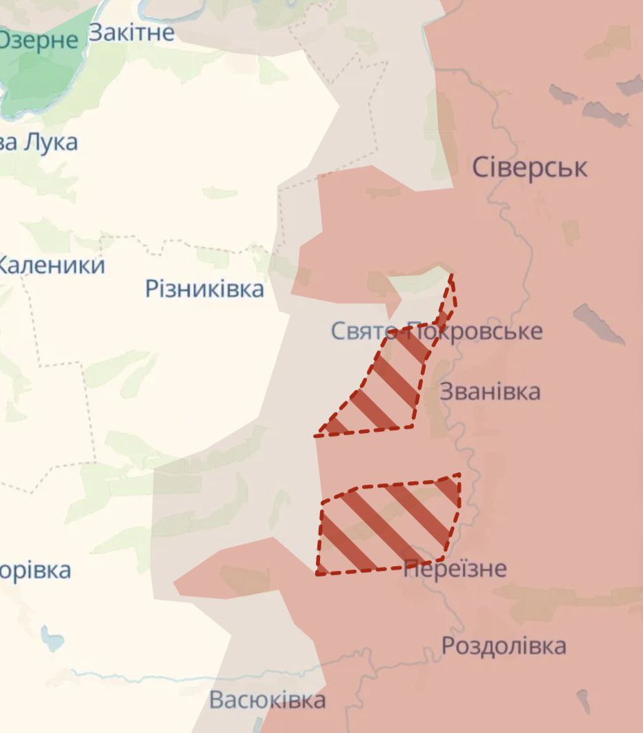 22:35 Российские войска продвинулись на двух участках к югу от Северска, сообщает украинский военный паблик Deep State.