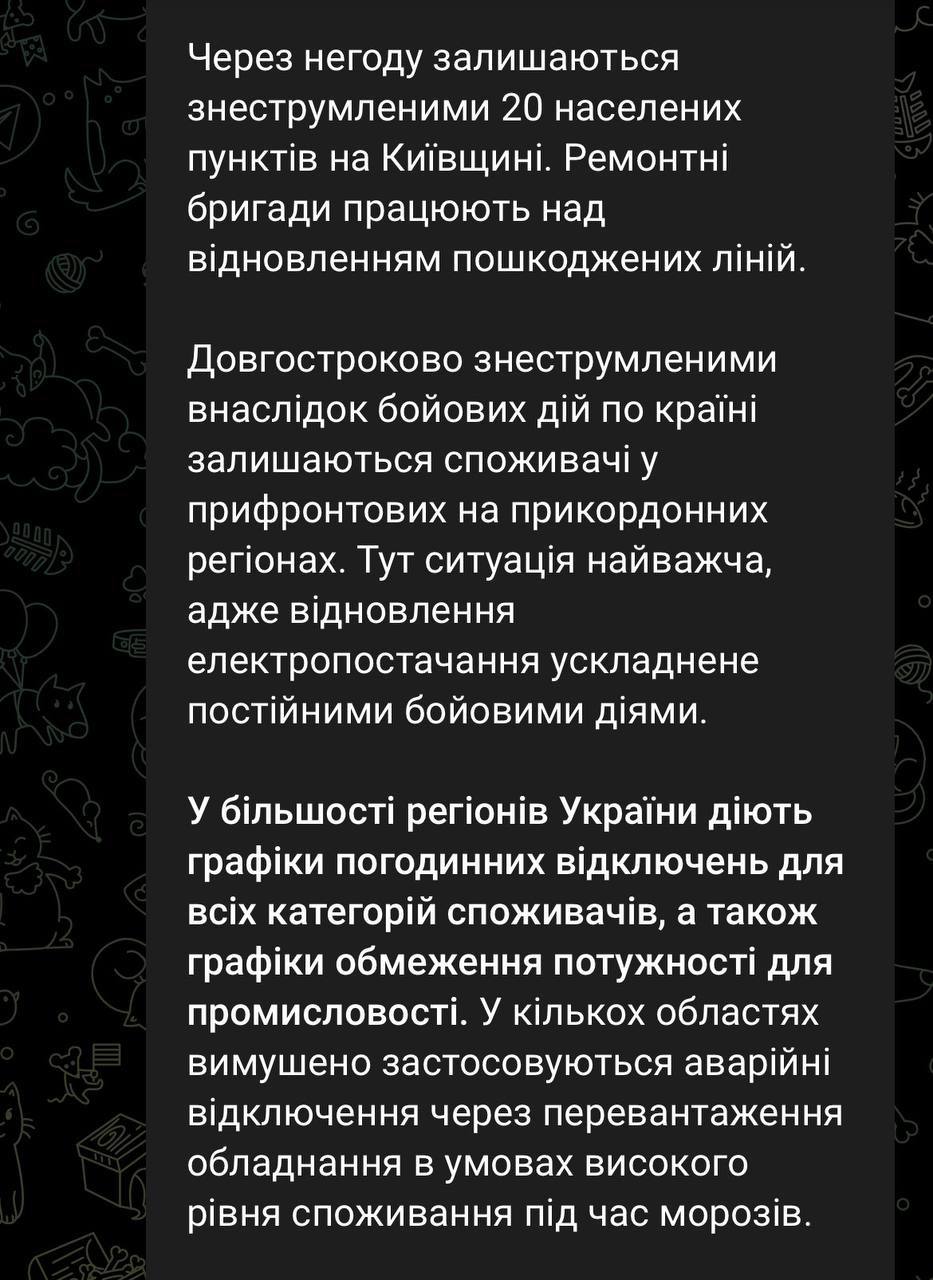 Поступают последние новости об энергообеспечении столицы и регионов Украины.