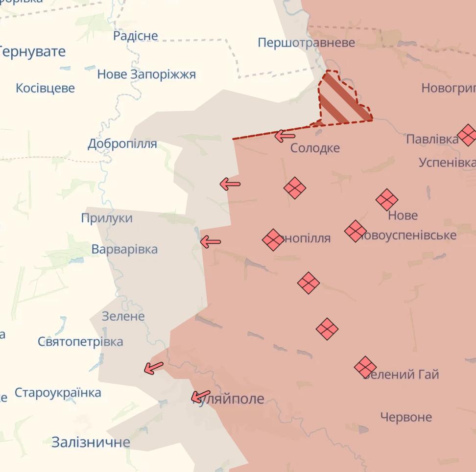 10.44 Армия РФ снова продвинулась в Покровске и севернее Мирнограда, а севернее Гуляйполя захвачено село Рыбное, сообщает Deep State.