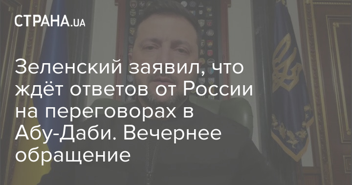 Зеленский заявил, что ждёт ответов от России на переговорах в Абу-Даби. Вечернее обращение