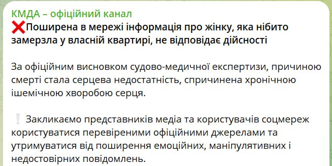 Киевская мэрия в свою очередь отрицает информацию о замерзшей в собственной квартире женщине, которая пережила Холокост.