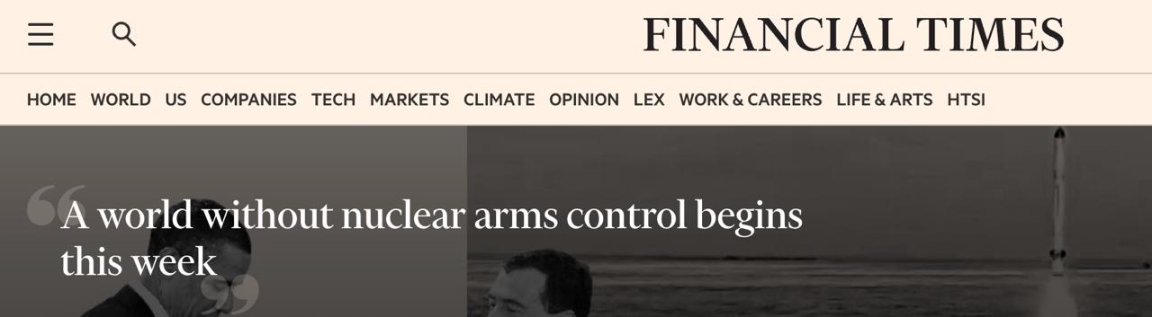 Издание напомнило о предложении президента РФ Владимира Путина, чтобы США и Россия добровольно продолжали соблюдать действующие ограничения после истечения срока договора о мерах по дальнейшему сокращению и ограничению стратегических наступательных вооружений (СНВ-3). Трамп назвал это "хорошей идеей", но так и не дал официального ответа. Он лишь заявил, что предпочел бы "новое, гораздо более выгодное соглашение" с Россией и Китаем. По мнению FT, Трамп ещё может объявить в последнюю минуту, что намерен принять предложение Путина.