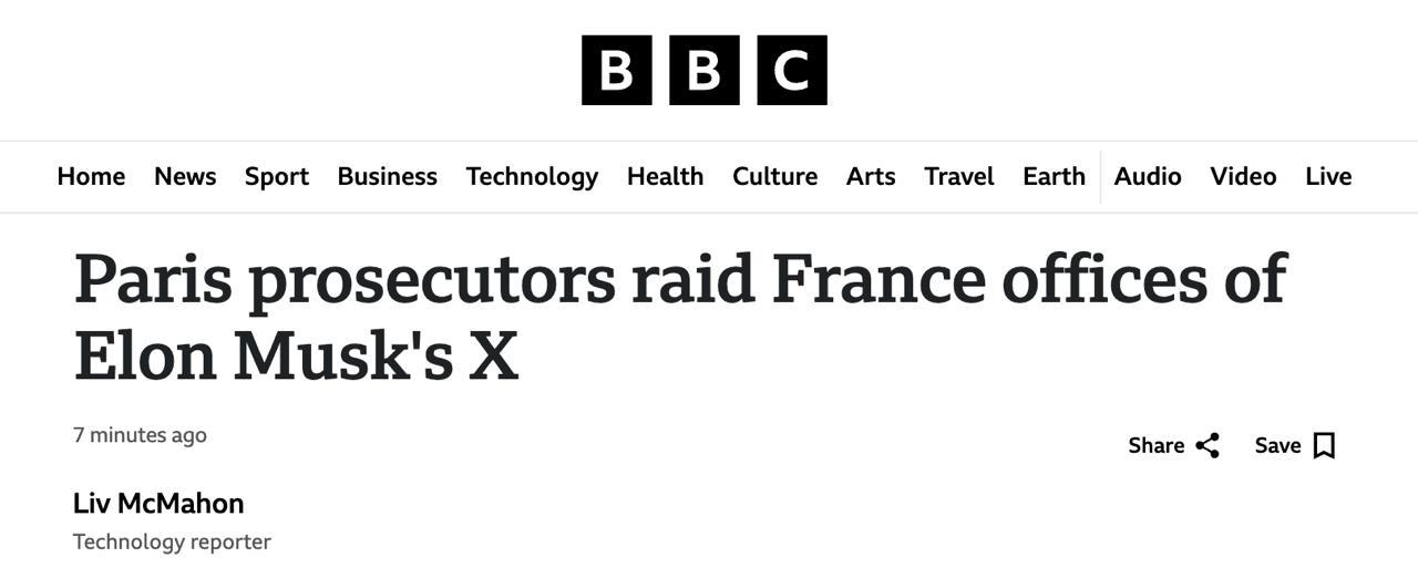 Подразделение парижской прокуратуры, занимающееся борьбой с киберпреступностью, совместно с работающим в той же сфере отделом национальной полиции Франции и Европолом провело обыск в офисе французского представительства компании амриканского миллиардера Илона Маска, владеющей соцсетью X (в прошлом Twitter).