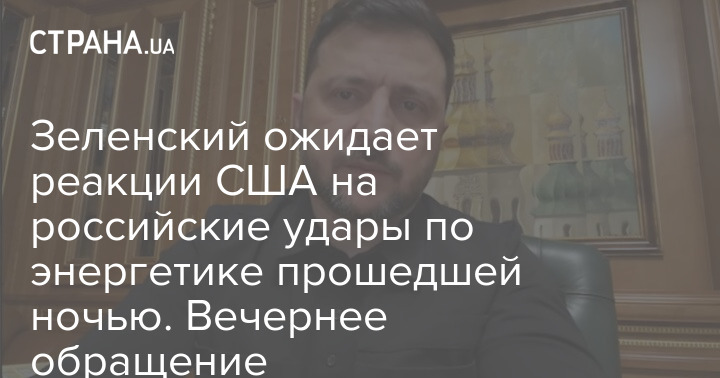 Зеленский ожидает реакции США на российские удары по энергетике прошедшей ночью. Вечернее обращение